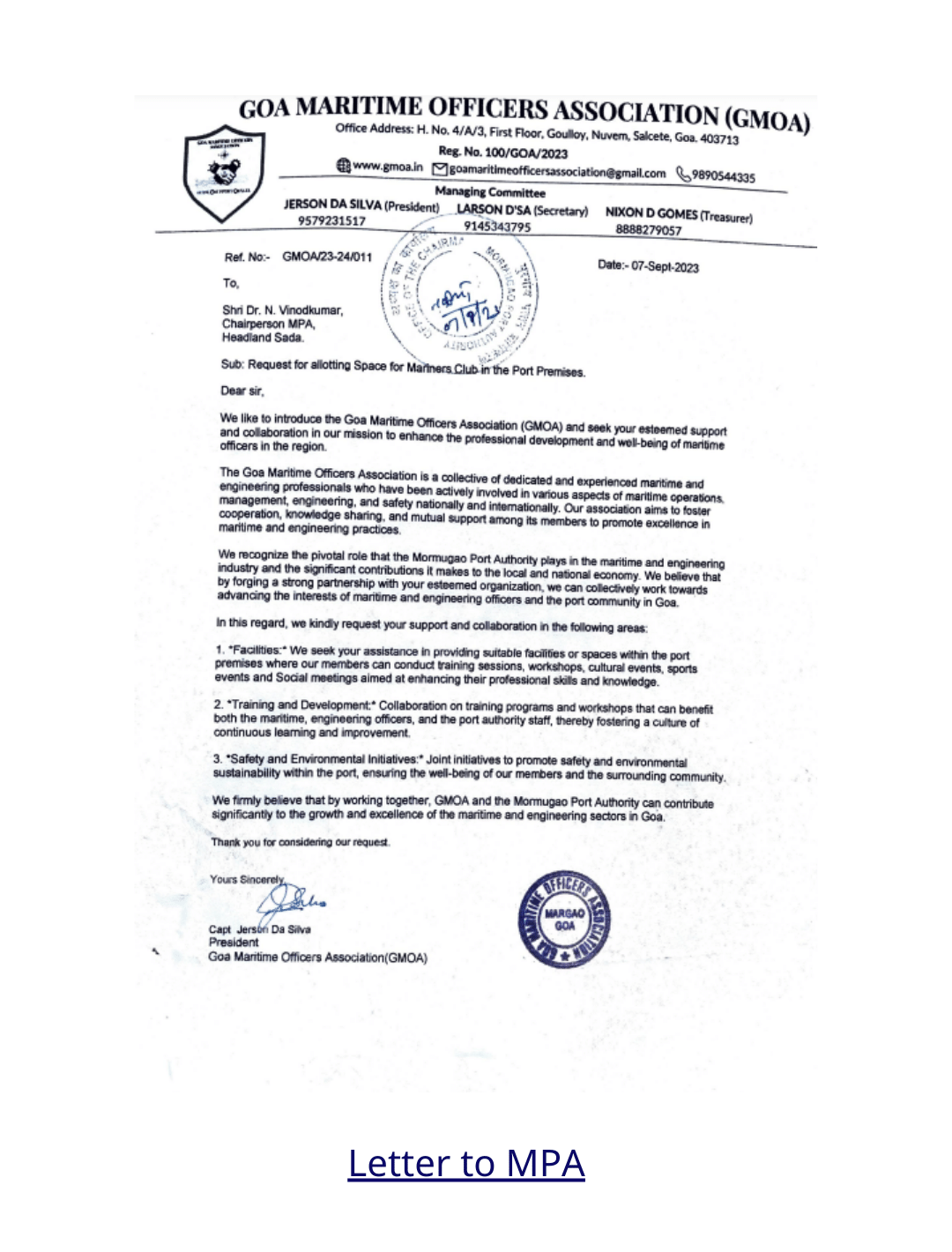 Welcome to the Goa Maritime Officers Association, a dynamic and cohesive community of maritime professionals committed to fostering excellence in the maritime industry. Established with the vision of creating a platform for networking, knowledge exchange, and collective growth, we stand at the forefront of promoting the welfare and interests of maritime officers in the picturesque state of Goa.