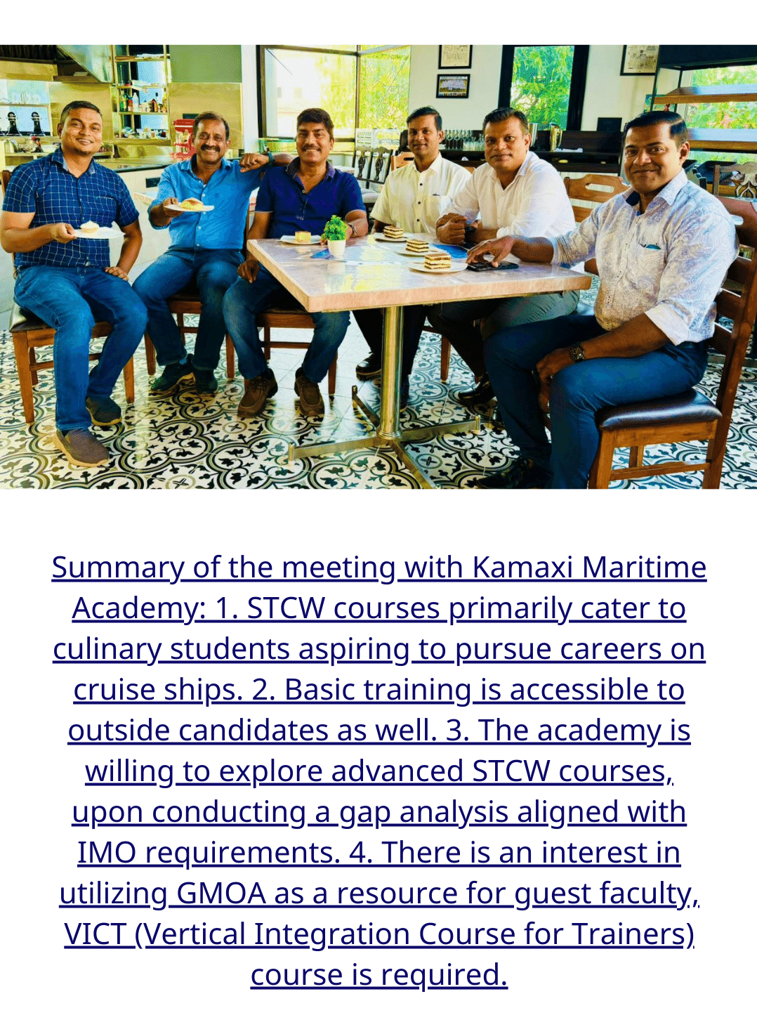 GMOA was represented by C/E Clive D’Costa, C/E Mahesh Shetkar, C/E Roque Vaz, CE Benny, 2/E Edwin D’Costa, and 2/E Alvin.